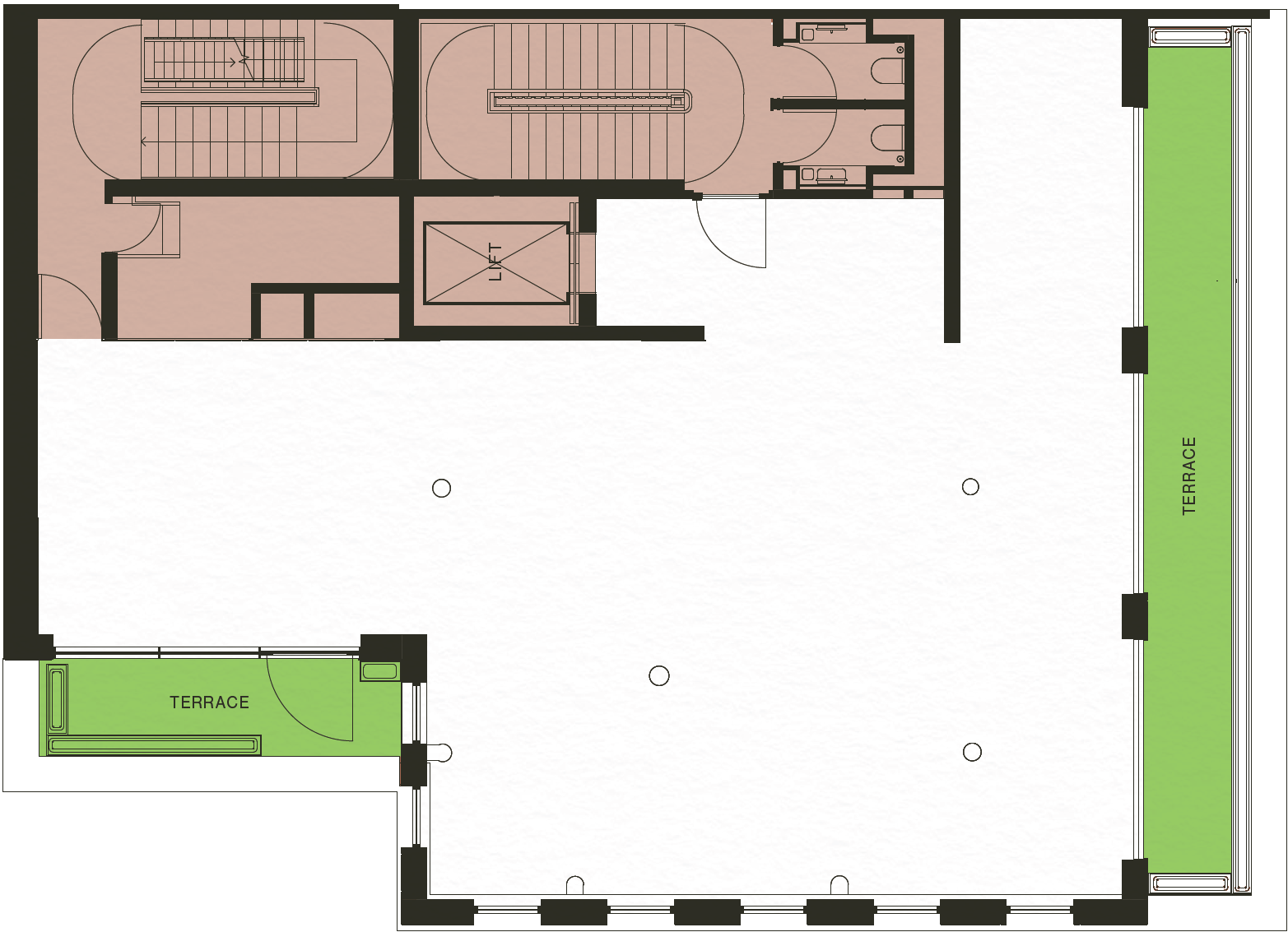 Lavatory provision is on a floor-by-floor basis with two super-loo type WC, one per men one per women, at each level. They are accessed by access control system by the tenant of each floor.